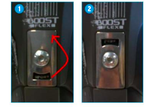 Z tyłu buta znajduje się blaszka obracając którą możemy regulować twardość.