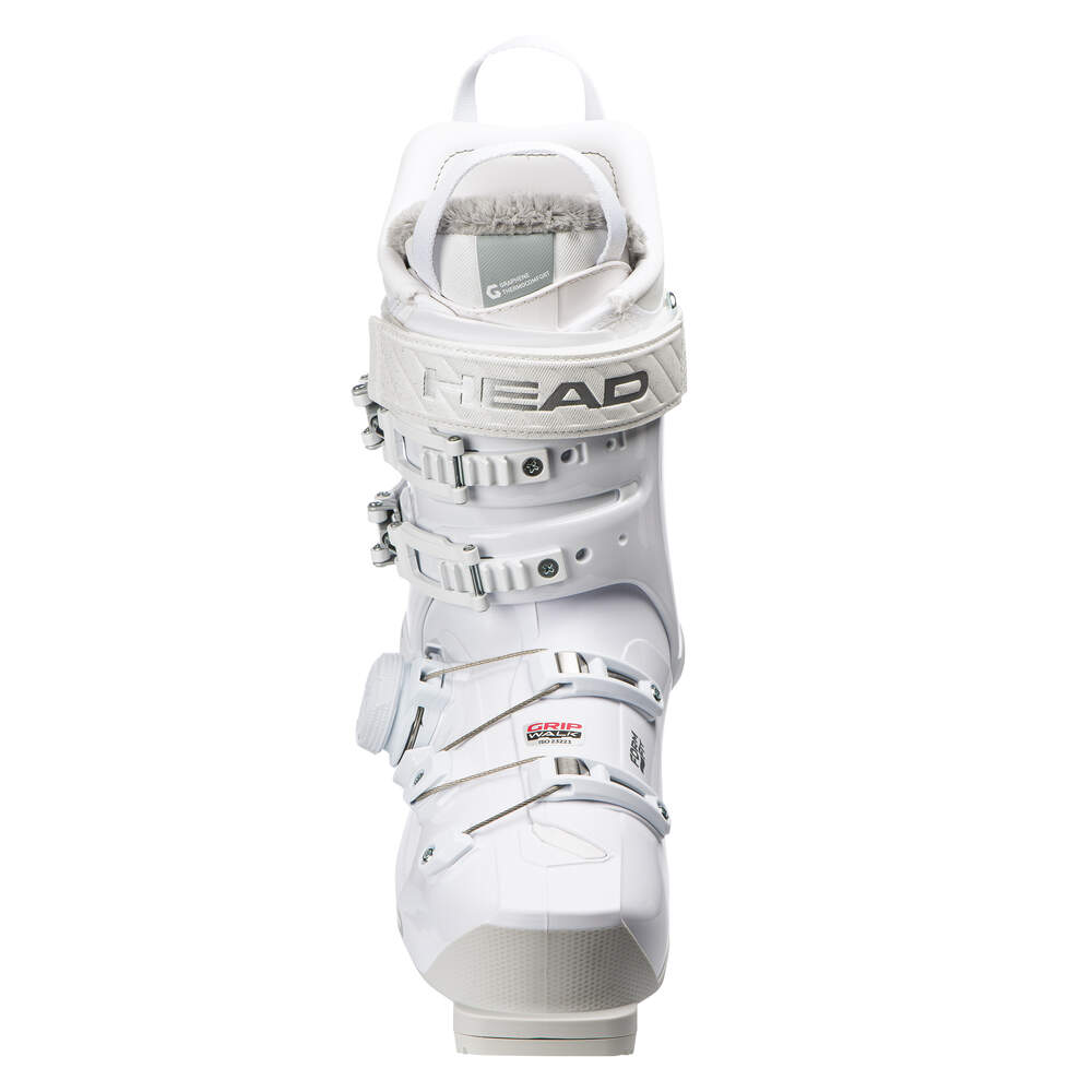 OPIS Buty Kaliber 95 W MV GW BOA oferują zaawansowanym narciarkom indywidualne dopasowanie i narciarską wydajność. Zostały opracowane specjalnie z myślą o integracji BOA® Fit System — technologii umożliwiającej mikroregulowane dopasowanie do anatomii stopy i łydki. Konstrukcja cholewki o podwójnym wtrysku łączy sztywniejszy plastik, który dodaje mocy w tylnej części, z miękkim materiałem w przedniej części stopy. Nowe buty wewnętrzne 3D Synapse EVO mają bardziej anatomiczny kształt z większą przestrzenią wokół palców i lepszym trzymaniem pięty. Technologia HEAD Form Fit umożliwia łatwe dopasowanie skorupy do kształtu stopy i łydki. Wplecenie materiału Graphene w but wewnętrzny ułatwia regulację temperatury, chroniąc stopy przed marznięciem i przegrzaniem. SZCZEGÓŁY Flex 105/95 Sizes 230/235-…-270/275 Kolory White (size 230/235-…-270/275) Shell PU Ergo Balance Race balance Forward lean: 12° Ramp angle 4° Szerokość PV 1850 cc Szerokość 100/MV TECHNOLOGIE BOA System BOA® Alpine z dwoma pokrętłami zapewnia precyzyjne wielokierunkowe dopasowanie strefowe z mikroregulacją. Utrzymuje piętę w optymalnej pozycji, co przekłada się na doskonały przekaz sił, stabilność i kontrolę. System BOA® to gwarancja maksymalnej wydajności. Grip Walk Większy komfort chodzenia i bardziej naturalna pozycja dzięki zakrzywionej podeszwie. More... Form Fit System 100% termicznego dopasowania skorupy, zapewniający komfort i korektę skorupy buta pod indywidualne cechy stopy. Tworzywo FormFit daje taką możliwość gwarantując długotrwały efekt. More... 3D Synapse Nowe buty wewnętrzne SYNAPSE PRO są cieńsze i mają bardziej anatomiczny kształt, a zastosowany w ich konstrukcji materiał Graphene odpowiada na potrzeby termiczne, zapewniając ciepło lub chłód — to prawdziwa rewolucja w zakresie regulowania temperatury. Graphene Thermocomfort Graphene Thermocomfort to technologia najnowszej generacji, która pochłania i rozprasza ciepło, eliminuje bakterie i zapewnia odporność na zużycie, gwarantując najwyższy komfort i imponujące osiąg